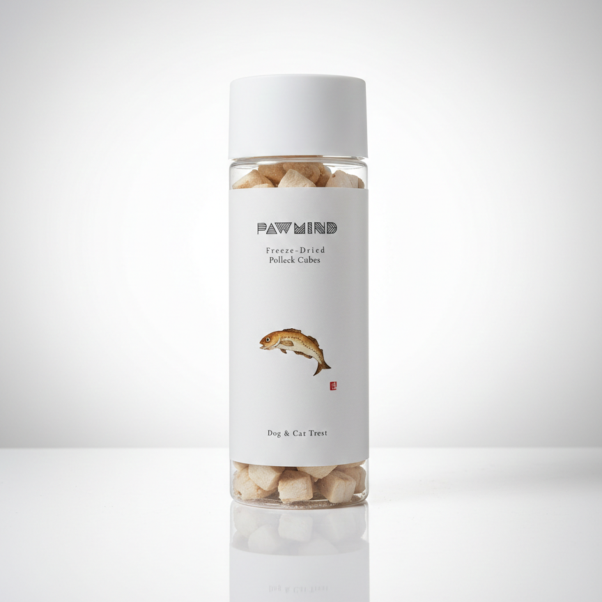 [PawMind x Freeze Dried Pollock Cubes are premium-quality dog and cat treats made from 100% wild‑caught Alaska pollock. These treats are gently freeze‑dried to preserve their natural nutrients, flavor, and texture, making them an excellent high‑protein snack for pets aged 3 months and older.